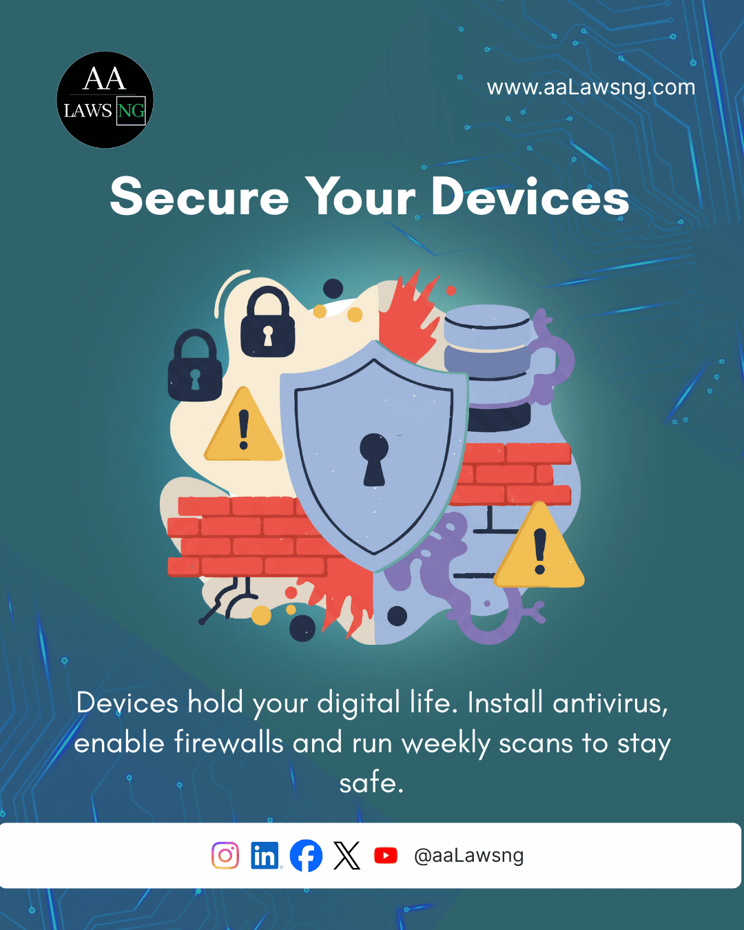 Secure Your DevicesAviel Avenante Law PracticeOct 29, 2025ShareYour devices are gateways to your digital life! 🛡️Keep them secure: install antivirus, enable firewalls, and run weekly scans. Don’t leave your data vulnerable!Thanks for reading Law Rays by aaLawsng! Subscribe for free to receive new posts and support my work.Subscribe